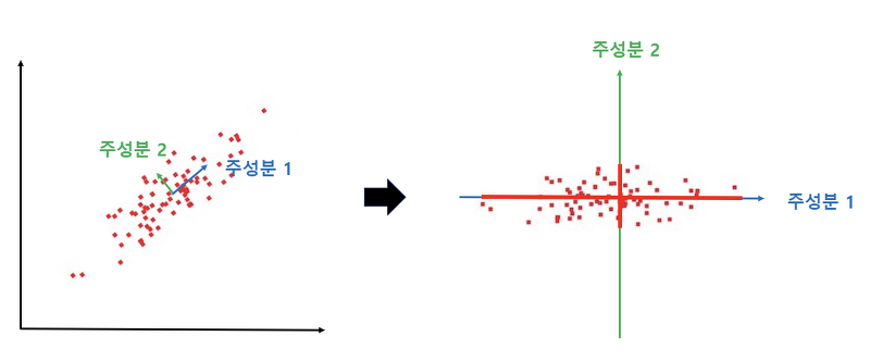 분산이 가장 큰 주성분을 추출함을 통해 차원 축소로 인한 정보 손실(information loss)을 최소화한다. PCA는 데이터 압축, 노이즈 제거, 데이터 전처리 등에 사용할 수 있다.