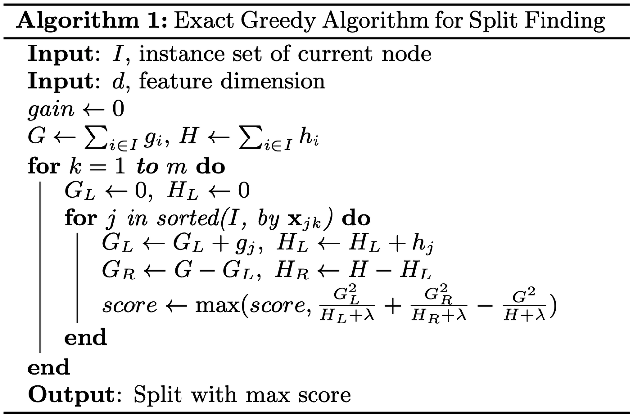 Basic Exact Greedy Algorithm이란 가능한 모든 경우를 나열해서 split point를 찾는 경우를 말한다.